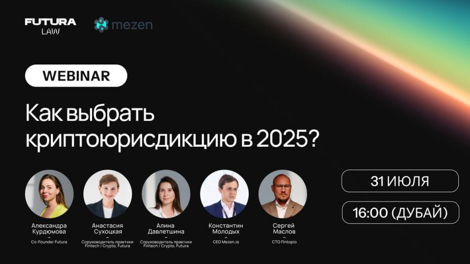 Регистрация доступна по ссылке. Участие бесплатное. После вебинара участники получат PDF-гайд с анализом трех лучших юрисдикций для криптобизнеса в 2025 году.