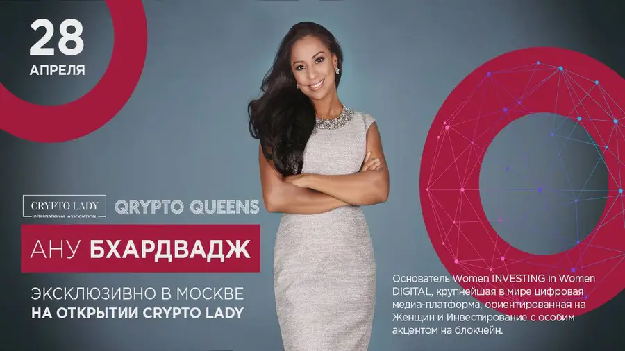 Ану Бхардвадж, основательница Women INVESTING in Women DIGITAL - цифровой медиа-платформы, ориентированной на женщин и инвестиции с усиленным акцентом на блокчейн - посетит Москву 28 апреля 2018. Ану Бхардвадж занимается развитием международного бизнеса для специалистов в области частного капитала, для женщин в области прямых инвестиций, высокопоставленных женщин-предпринимателей, краудфандингов, блокчейн и криптовалютных инициатив, ориентированных на женщин. Бхардвадж инвестировала в 17 ICO (в том числе Celius, BlockChain Terminal, CashBet, COSS, AirSwap, AirToken, Civic) через криптофонд, основанный в Канаде, и в настоящее время запускает Глобальный фонд блокчейн с акцентом на женщин.