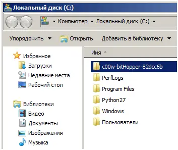 Распаковываем архив в корень диска C: