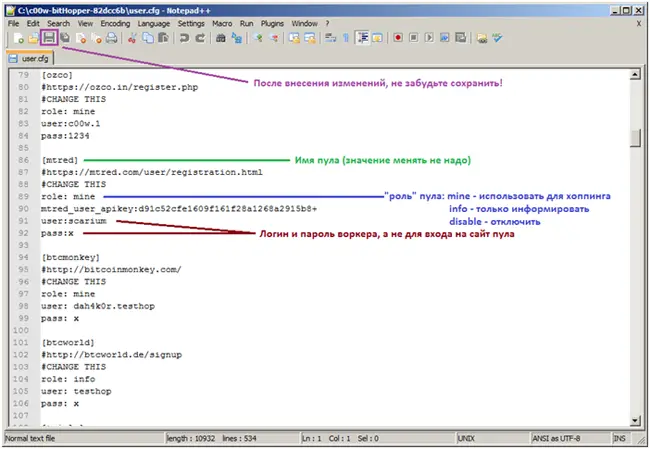III Задаем конфигурацию для bitHopper