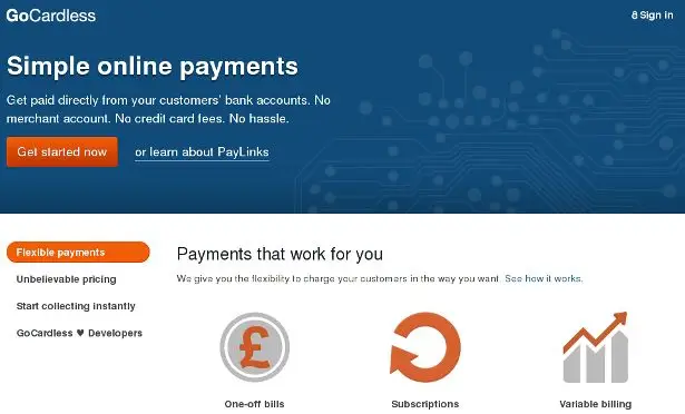 Компания GoCardless является онлайн поставщиком услуги прямого дебета в Великобритании. Фирма была основана в январе 2011 года Томом Бломфилдом, Мэтом Робинсоном и Хироки Такеши. Проект начинался как попытка упростить платежи между небольшими организациями, группами друзей. В то время компания называлась GroupPay.