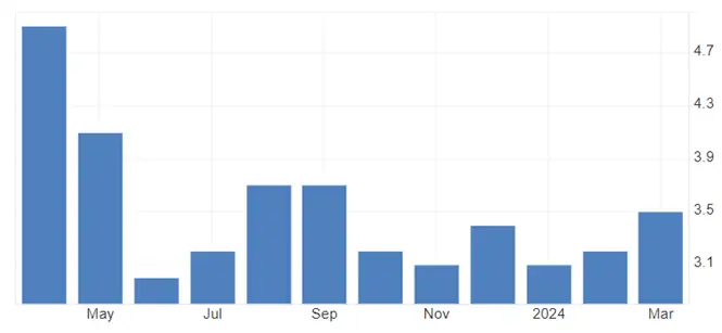 В США без учета цен на продукты питания и энергетические носители потребительская инфляция составила 3,8 %, и в месячном исчислении увеличилась на 0,4%, как и за прошлый месяц.