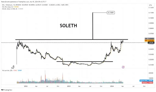 Питер Брандт (Peter Brandt) предполагает, что, если SOL удастся преодолеть этот уровень сопротивления, ценность монеты может удвоиться по сравнению со второй по капитализации криптовалютой: