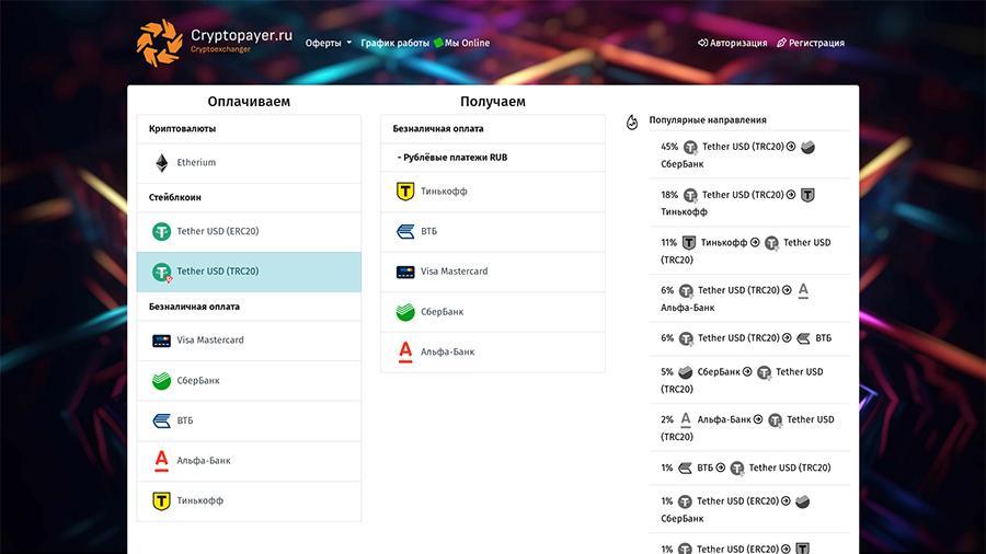 Для проведения обмена на Cryptopayer можно выбрать любой удобный способ оплаты. Сервис поддерживает различные методы пополнения и вывода средств, включая банковские карты, электронные кошельки и наличные — выберите оптимальный способ и следуйте инструкциям на экране.