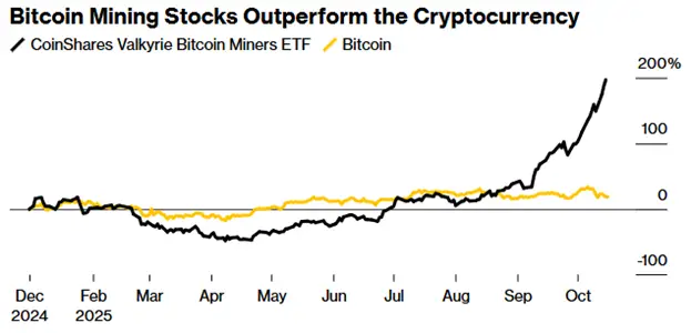 «Теперь главными бенефициарами цикла стали не держатели цифрового золота, а майнинговые компании. Отслеживающий их акции индекс с начала года вырос более чем на 150%. Инвесторы оценивают добытчиков биткоина в контексте их потенциала на рынке высокопроизводительных вычислений», — объяснили собеседники издания.