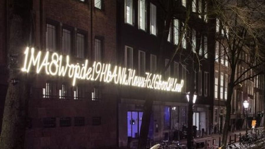 На улице Херенграхт в самом центре туристического района Амстердама художница Фредерика Топ (Frederike Top) установила световую инсталляцию в виде адреса Биткоина.