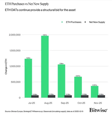 Если темпы накопления актива компаниями будут сокращаться прежними темпами, а предложение останется неизменным, структурный спрос на эфир исчезнет. В такой ситуации достижение криптовалютой новых исторических максимумов будет проблематичным, заключили специалисты.