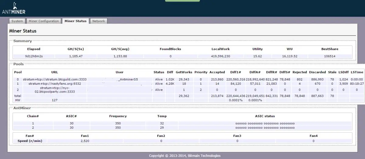 Прошивки большинства современных ASIC-майнеров основаны на Linux и имеют удобный веб-интерфейс, который позволяет управлять настройками сети, подключением к пулам, регулировкой частоты и напряжения, просматривать подробную статистику работы майнера, мониторить неисправности, обновлять прошивку и многое другое.