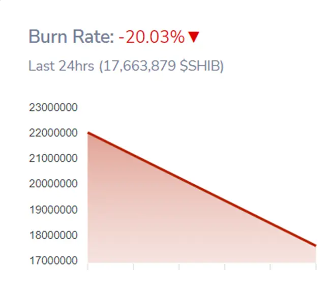 Также позитивным фактором можно назвать тот факт, что SHIB имеет хоть и огромное, но ограниченное предложение в один квадриллион монет. Кроме того, на платформе происходит постоянное их сжигание. Так за последние сутки было сожжено токенов более чем на $17 млн. За 24 часа уровень сжигания упал на 20,03%.