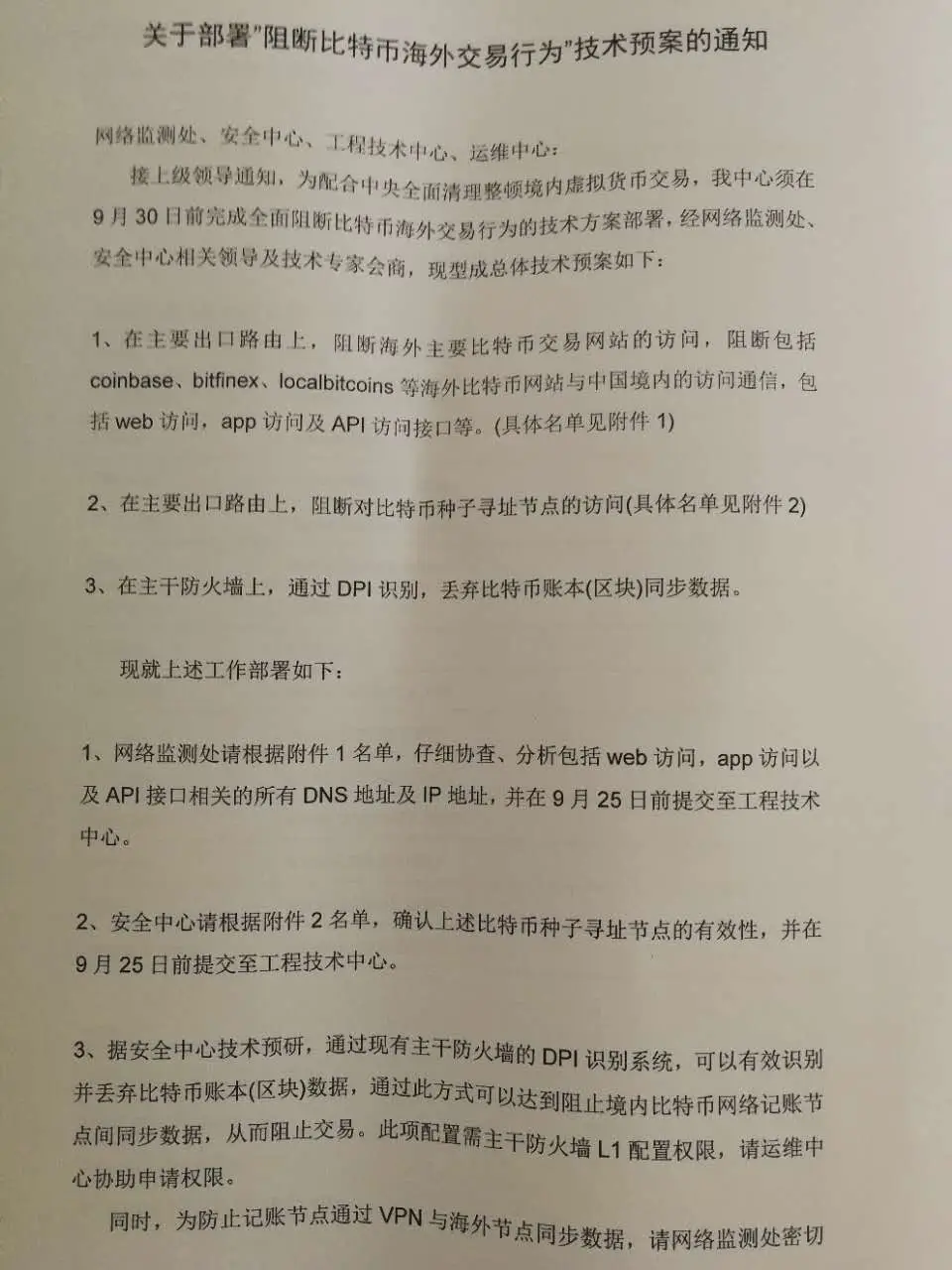 Кроме того, с 16 сентября в сети гуляет документ на китайском языке, который содержит якобы распоряжения властей Китая о расширенных мерах регулирования биткоина, которые далеко выходят за рамки простого закрытия бирж. Разработчик Bitcoin Core BTCDrak опубликовал фото этого документа в своем Твиттере: