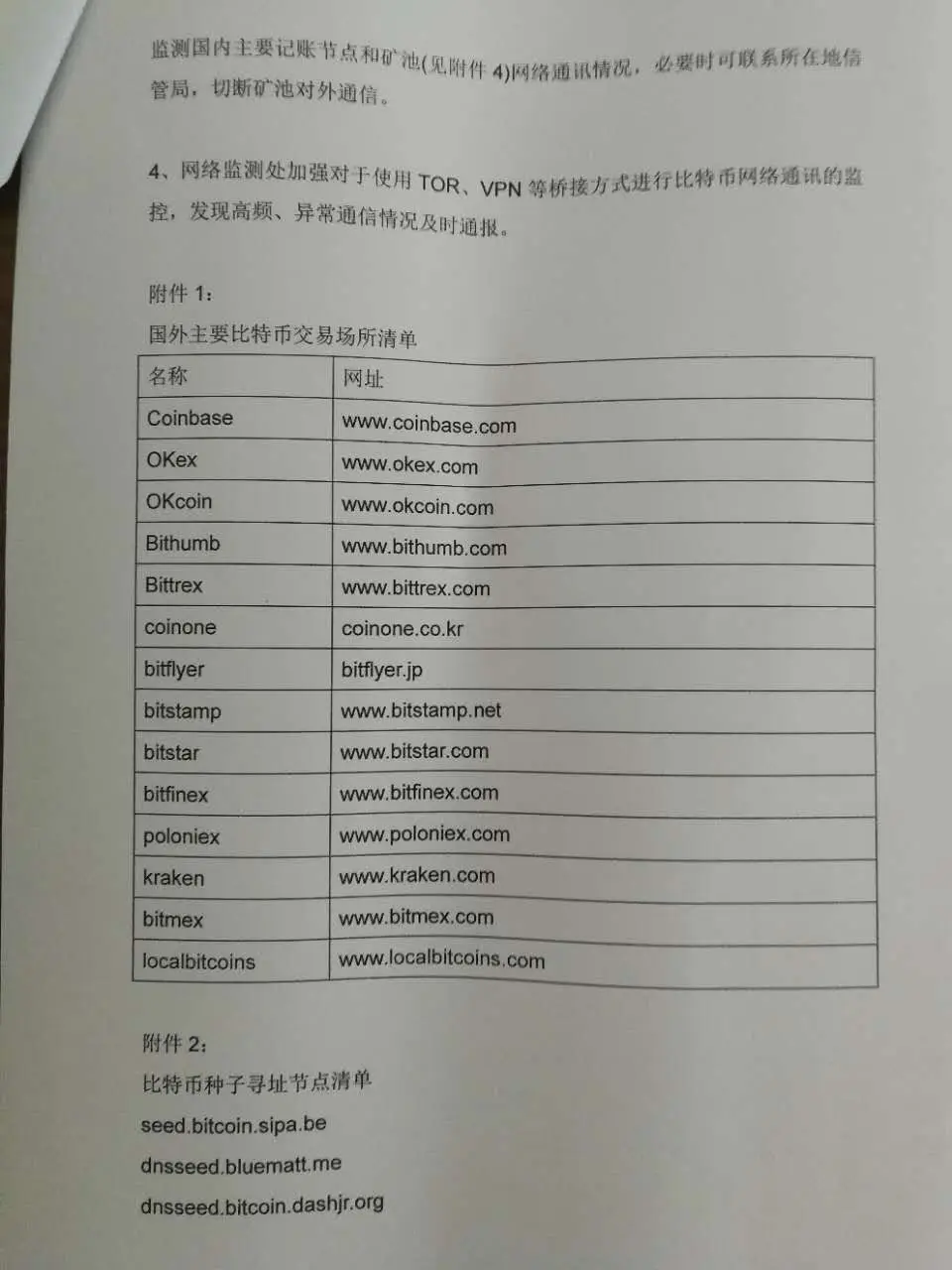 Из второй страницы документа ясно, что регуляторы планируют блокировать сайты как минимум 13 японских, корейских, американских и европейских криптовалютных бирж, в том числе Bitstamp, Bithumb, Bitflyer, Coinbase, Bitfinex, Kraken и Poloniex, а также OTC-платформу LocalBitcoins. Самсон Моу из Blockstream подтвердил в комментариях к твиту, что, по его мнению, этот документ вполне может быть настоящим.
