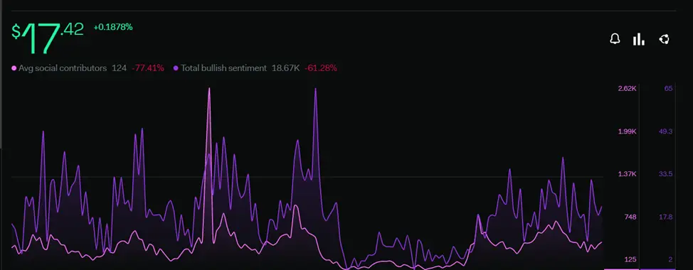 По большому счету март прошел для Avalanche в боковом движении. Монета прибавила в цене около 2%, что мало для такого волатильного актива. В ближайшее время стоит быть осторожными с вложениями в токен AVAX. По данным портала LunarCrush, интерес к Avalanche в социальных сетях за последнюю неделю упал почти на 80%. Кроме того, платформа показывает какой процент инвесторов настроен по-бычьи. К сожалению, за последние семь дней наблюдалось сокращение показателя более чем на 60%.