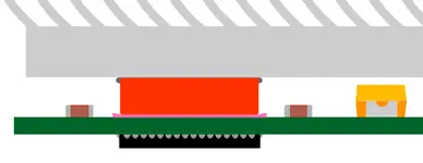 Поскольку навесные элементы не дают прижать радиатор, то он будет поднят алюминиевыми площадками. Чтобы не было замыкания, они будут контактировать с текстолитом и контактными площадками через термопрокладки. С радиатором же площадки будут контактировать через термопасту.