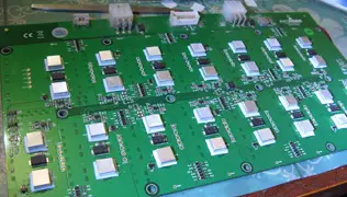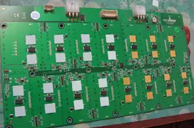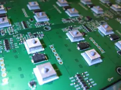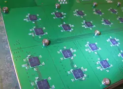 Алюминиевые площадки, термопрокладки, плата с вычислительными чипами: