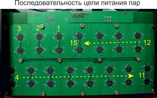 Но так просто это нельзя реализовать, поскольку радиатор не повесить на обратную сторону напрямую. В данной модели нет общей массы, а питание чипов организовано цепочкой, а не параллельно.