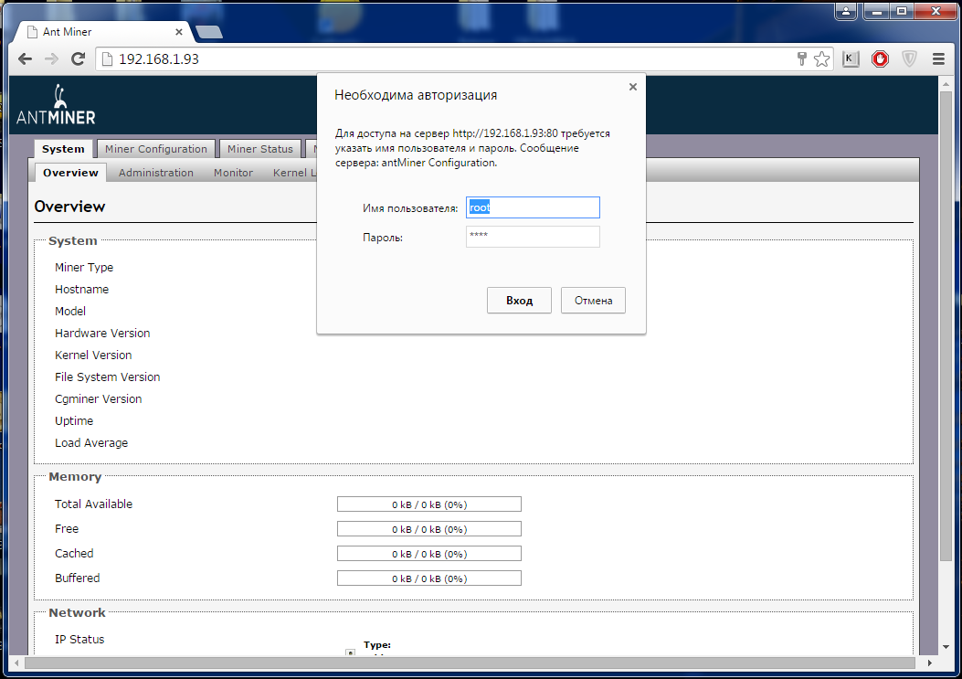 В первую очередь, вам надо с ним связаться по этому IP через любой браузер, вбив в адресной строке IP обнаруженного АСИКа. Что-то типа такого варианта: